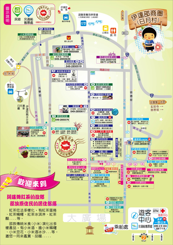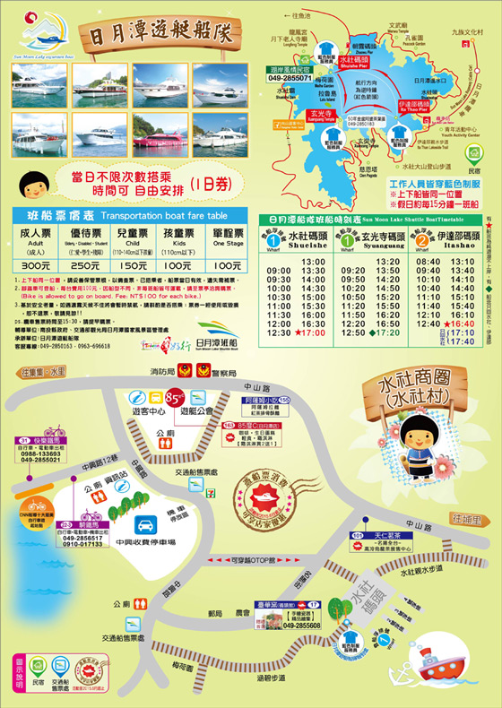 (3)伊達邵碼頭:伊達邵遊客服務中心(6號售票窗口),湛岸沙蓮售票亭